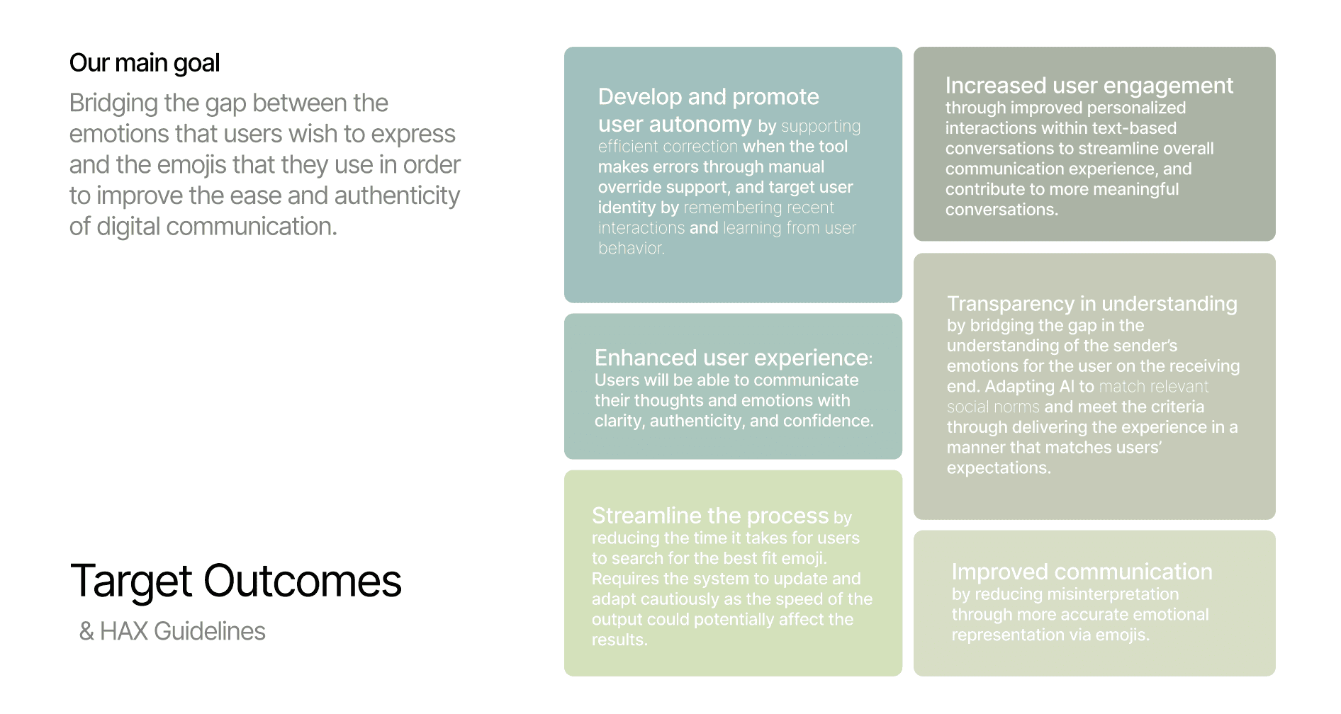 Based on the concepts chosen, we identified target outcomes,